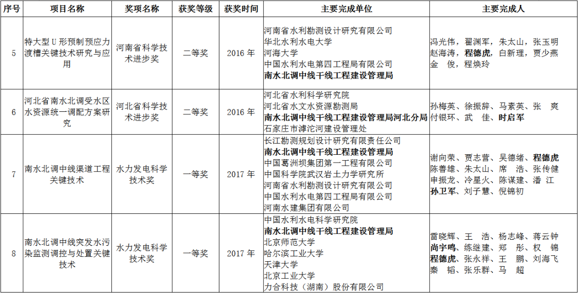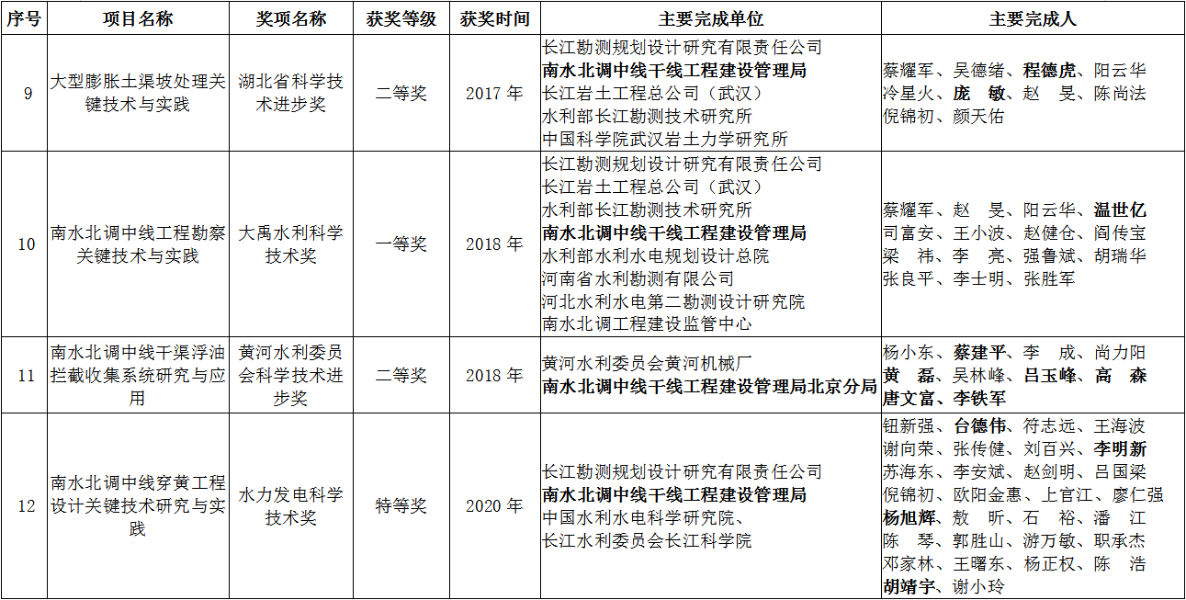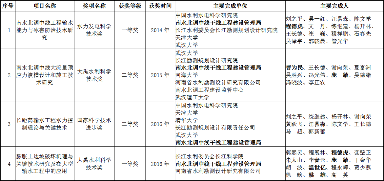 中線建管局科技成果獲獎(jiǎng)項(xiàng)目信息表