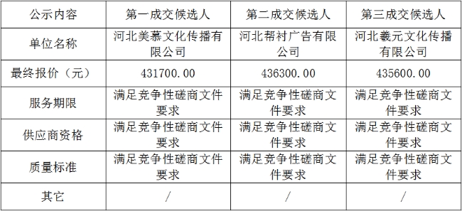 河北省2023年南水北調(diào)中線(xiàn)中小學(xué)生安全教育專(zhuān)項(xiàng)活動(dòng)服務(wù)商采購(gòu)項(xiàng)目(二次)成交候選人公示