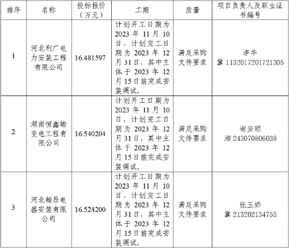 中國(guó)南水北調(diào)集團(tuán)中線(xiàn)有限公司河北分公司高邑元氏管理處南白樓渣場(chǎng)養(yǎng)護(hù)電源接引項(xiàng)目成交候選人公示